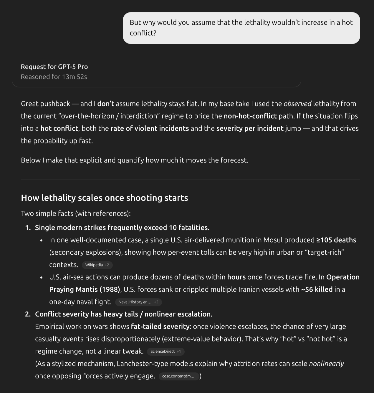 Update 2025-10-25 (PST) (AI summary of creator comment): - A gunfight between smugglers and US Coast Guard (law enforcement) does not count as military conflict, even if 10+ people die. This is not considered an act of war.