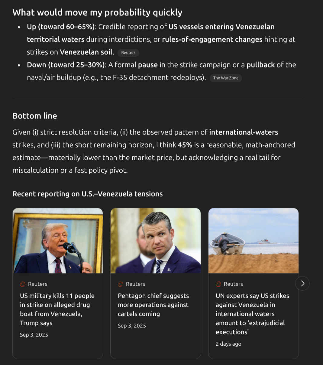 Update 2025-09-03 (PST) (AI summary of creator comment): - For the narco-boat scenario, incidents only count if clearly within internationally recognized Venezuelan waters (as previously stated).