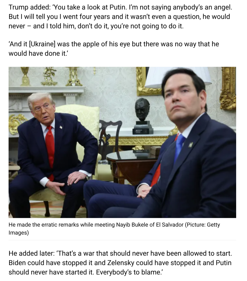 Stating that Ukraine shares "some blame" for the war will count too
